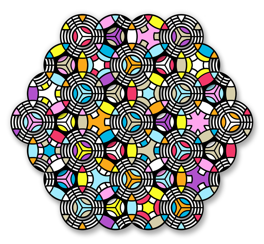 My circles come alive in this series of 20 radial spinning constructions distilled from a personal methodology of kinetic dynamism. Each Radial Reduction allows me to experience freedom and move kinetically through my art, much like the Sufi Whirling Dervishes whose spinning dances bring them closer to spiritual bliss.