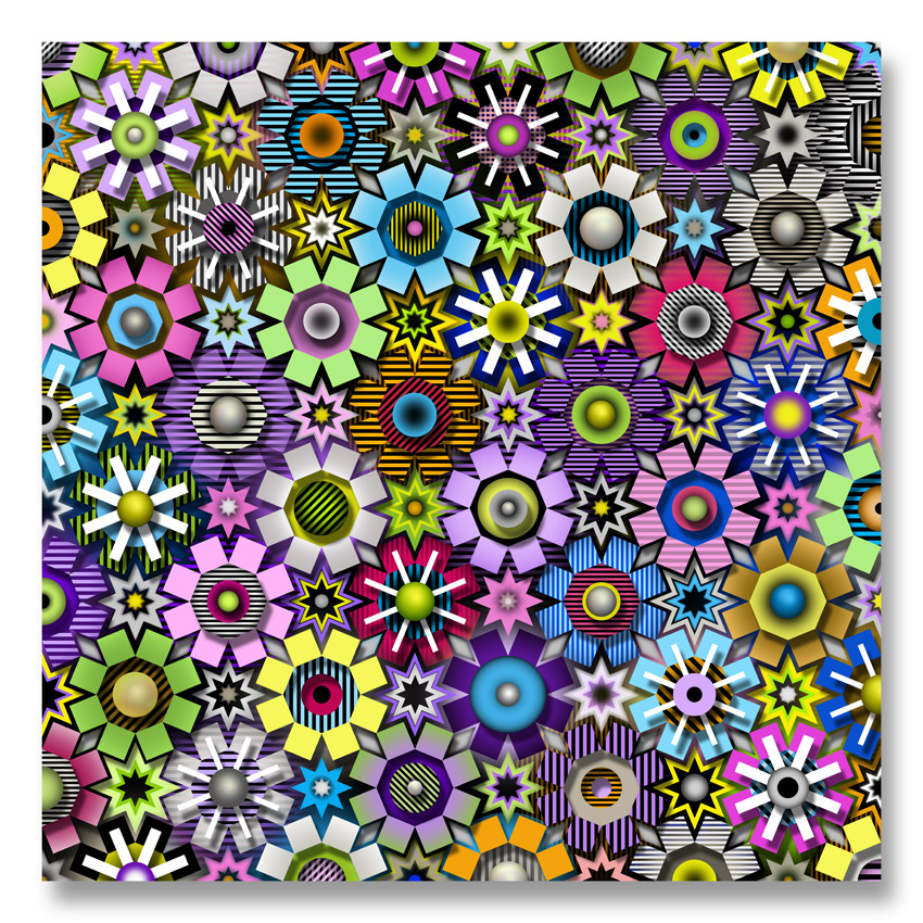 PYRALUX IV uv inkjet on acrylic mounted to composite aluminum and cut out on cnc router 47.5″ x 47.5″, edition 1 of 3