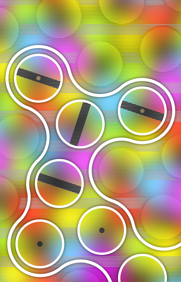 My circles come alive in this series of 20 radial spinning constructions distilled from a personal methodology of kinetic dynamism. Each Radial Reduction allows me to experience freedom and move kinetically through my art, much like the Sufi Whirling Dervishes whose spinning dances bring them closer to spiritual bliss.